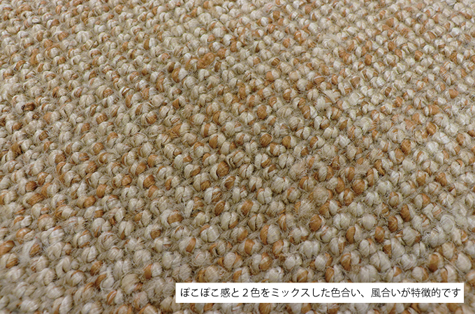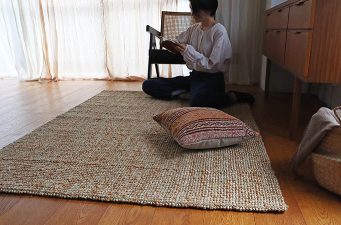 3つ目は、ぽこぽことした凹凸のある素材感が特徴的な、ジュートラグNKです。