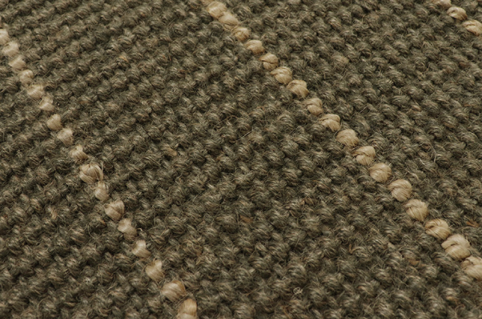ベースの部分はグレーに近い深いグリーンに染めたジュート、ストライプのラインは染めていないジュートを使用しています。