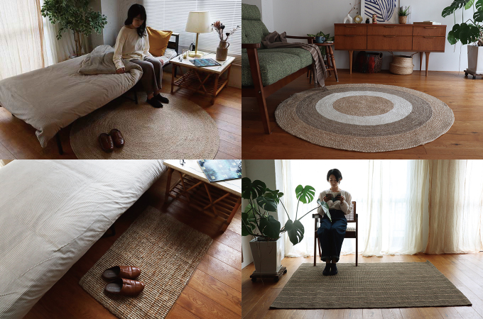 天然素材ならではのナチュラルな雰囲気や、さらりとした肌触りが特徴のジュートラグシリーズです。