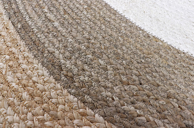 素材そのままのナチュラルさを感じられるシンプルな円形のラグです。平たい三つ編み状に編み上げたジュートを、渦を描くように手作業で縫製して仕上げています。