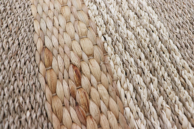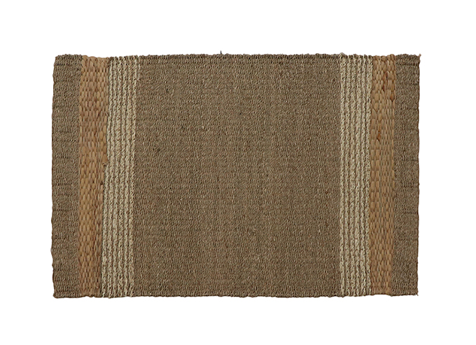 シーグラスをベースに、ウォーターヒヤシンスとヤシを両端に組み合わせた天然素材の素朴な風合いをお楽しみいただけるラグです。
